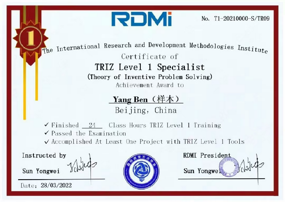 7月13日和20日,为期两天的RDMI®TRIZ创新方法一级线上公益培训顺利举办。本次培训吸引了来自全国超千名学员报名参与,学员包括长安汽车、比亚迪、公牛集团等知名企业的研发人员,厦门市科协也积极动员本地企业参训。据悉,此次厦门地区共有5位企业学员顺利通过考试,获得了由RDMI®TRIZ五级大师孙永伟博士签发的TRIZ一级认证证书。