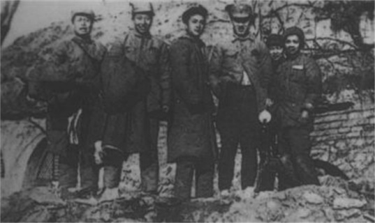 图:1939年,沈鸿(右一)和部分技术人员在安塞茶坊留影。