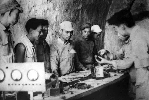 图:延安通信材料厂的技术人员在窑洞中自制通信器材