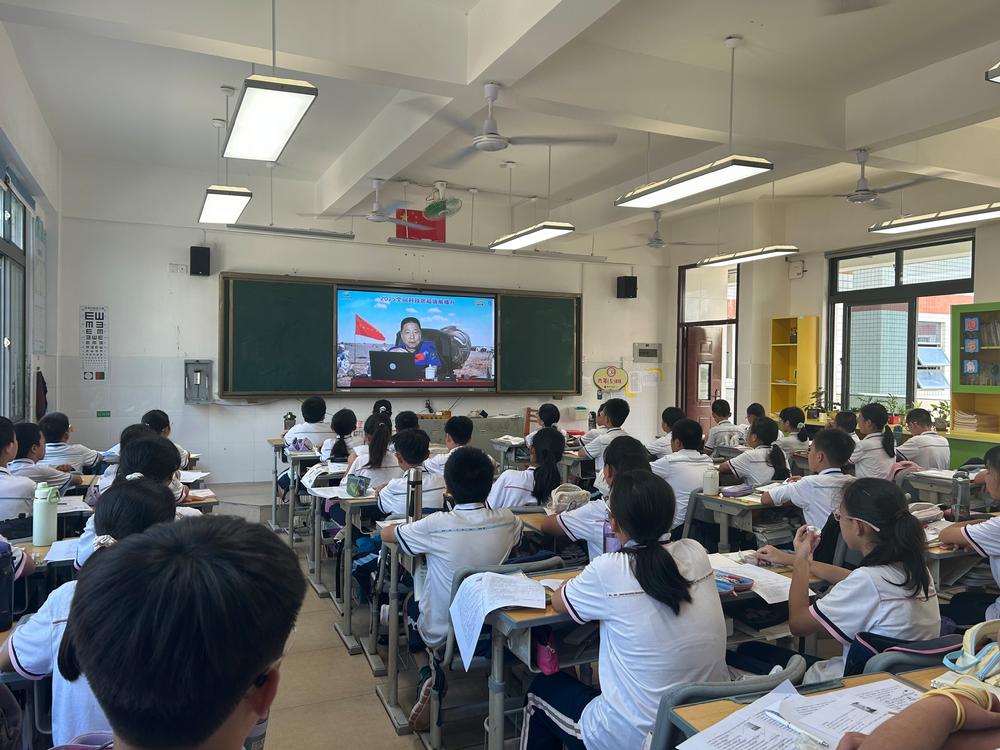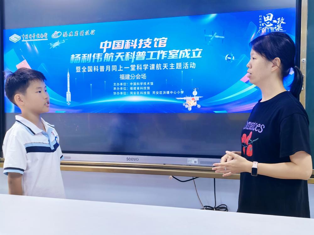 9月30日上午,同安区10余所学校的学生同步参与全国科普月“同上一堂科学课” 主题直播活动,通过线上连线的方式与航天英雄杨利伟展开“云端对话”,在沉浸式体验中感受航天科学的独特魅力。