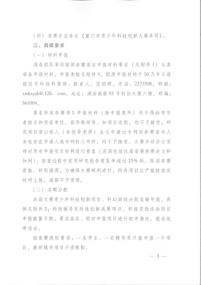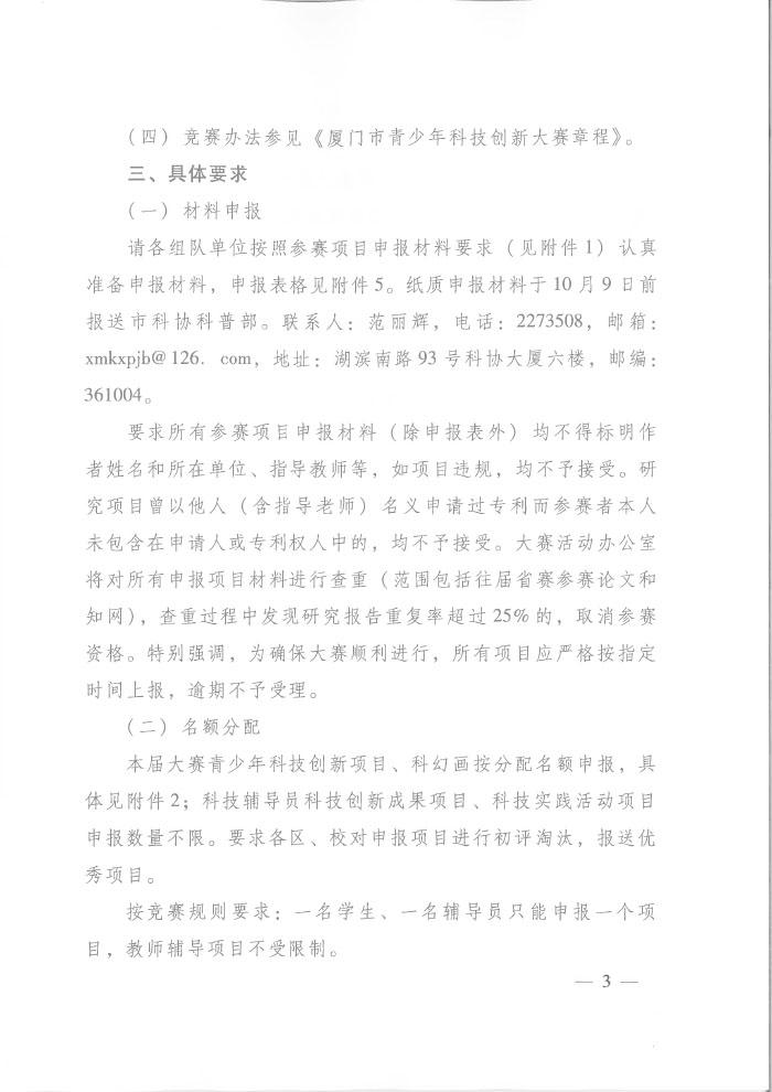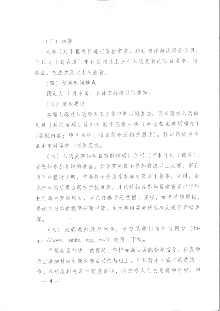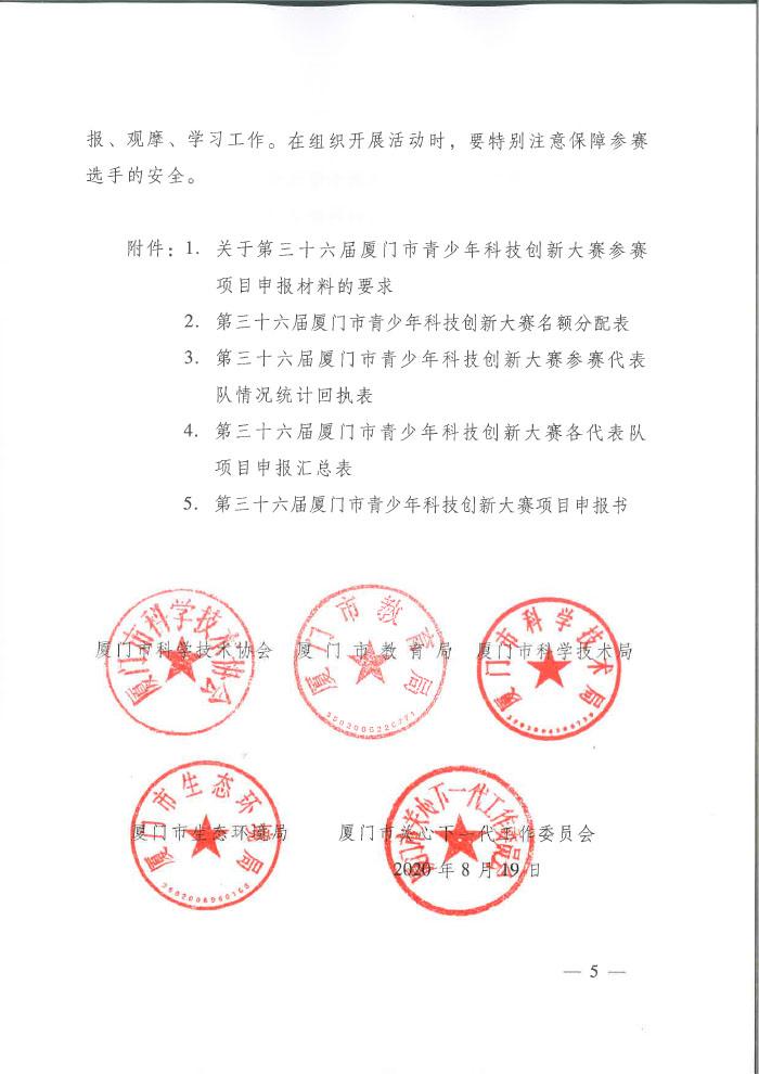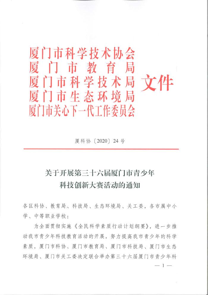 关于开展第三十六届厦门市青少年科技创新大赛活动的通知