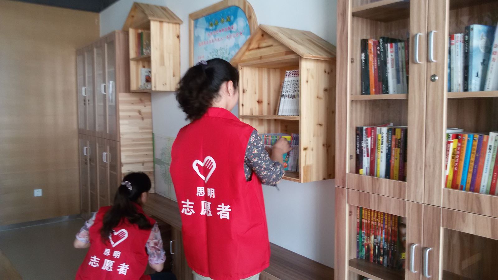 近日,我市第一个“空中乐园.鸟巢书屋”在梧村社区筑造完工,该书屋座落于罗宾森5楼“空中乐园”厝边义工服务站内。思明区志愿者经常来到“鸟巢书屋”前,正在分门别类地整理书籍(如图)。