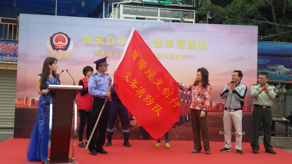 4月12日下午,由思明区人民政府主办、思明区消防大队、滨海街道办等部门协办的主题为“保家庭平安,建幸福思明”的消防安全社区行系列活动在曾厝垵文创村篮球场启动。