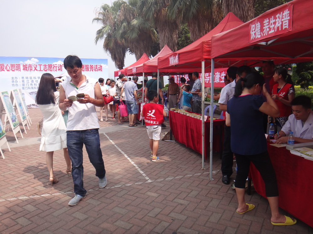 7月18日上午,思明区科协在市海滨公园开展“感恩生活 爱心思明 城市义工志愿行动”科普志愿服务活动,受到了市民和游客们的广泛参与和一致好评。