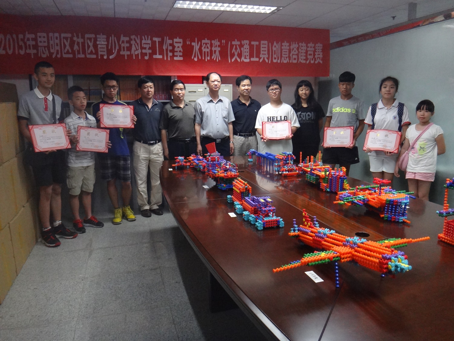 7月24日上午,思明区科协举办2015年思明区青少年科学工作室“水帘珠”(交通工具)创意搭建竞赛圆满落幕。