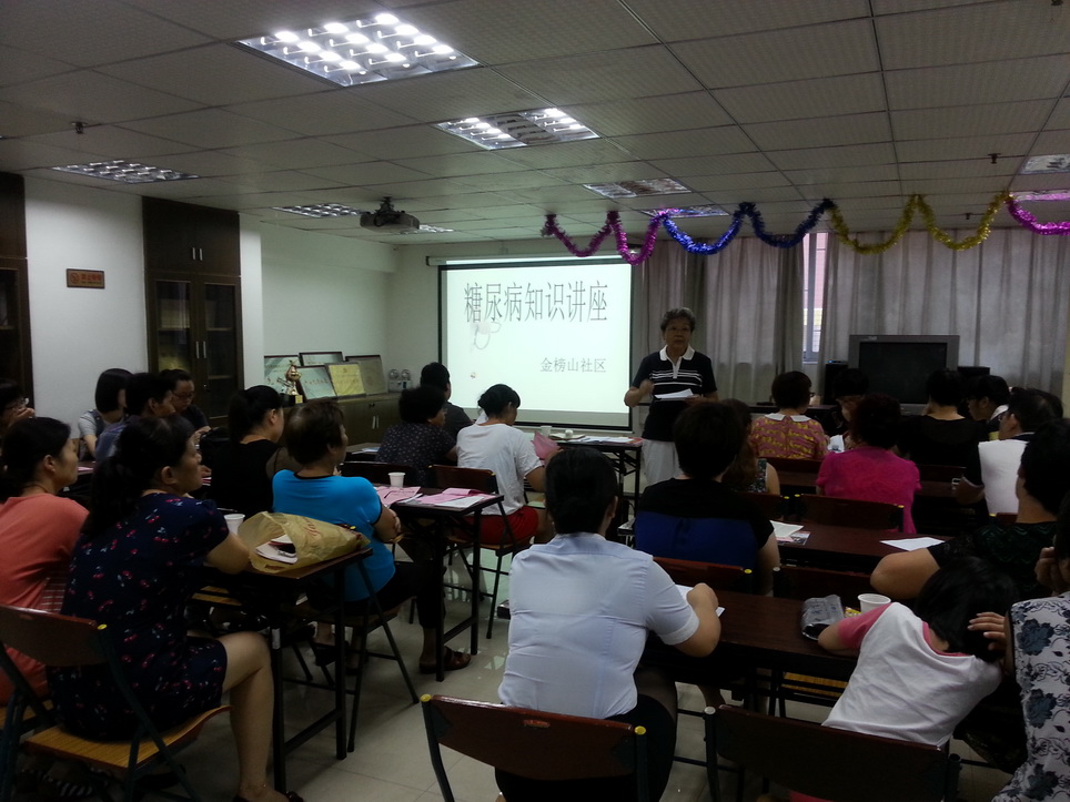 为了提高社区居民的健康意识,了解糖尿病的相关知识,8月21日下午,金榜山社区邀请社区卫生服务中心的志愿者阮医生为社区居民上了一堂“糖尿病的防治”科普知识讲座。