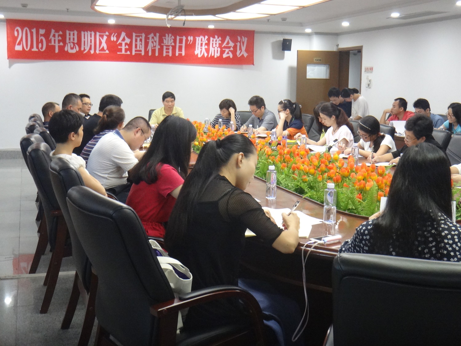 9月16日下午,思明区科协召开了2015年思明区“全国科普日”联席会议,区科普工作领导小组、区全民科学素质工作领导小组成员单位、各街道、相关科普教育基地共32家单位参加。