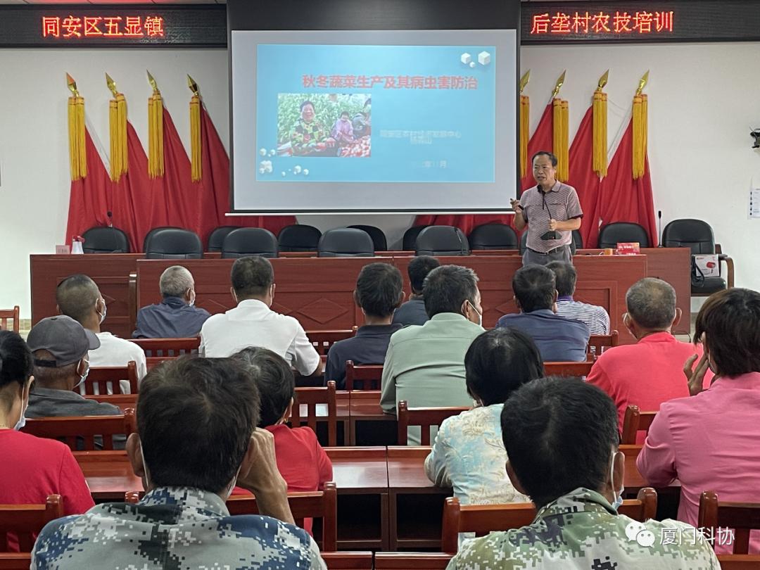 11月15日,市科协科技工作者服务中心应邀赴同安区五显镇后垄村开展《秋冬蔬菜生产及其病虫害防治》技术培训,全村40多位村民参加了培训。