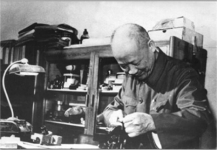 图:沈鸿在查阅资料。沈鸿只受过四年的小学教育,而他在长期自学和实践中积累了渊博的知识和极高的工程实践能力。