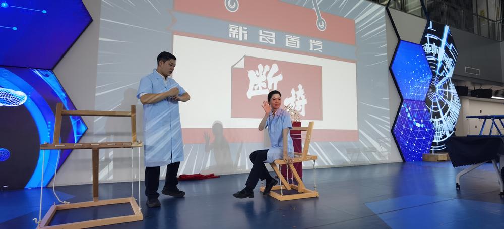《“断”椅》项目选取“悬浮椅”作为主题,结合诙谐的表演、有趣的探究性实验,让观众了解张拉整体结构的基本原理,完美的将科学知识与多种艺术形式巧妙融合。选手们专业的知识科普和张弛有度的表演受到了评委的一致好评。经过激烈的角逐,《“断”椅》表演项目获得了本次全国科学实验展演汇演活动一等奖。