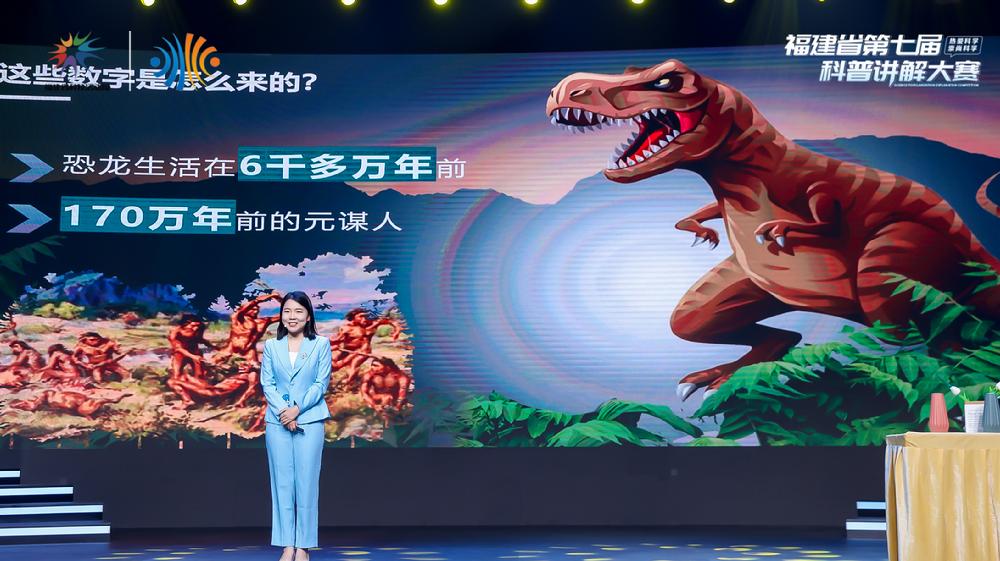 本届大赛以“热爱科学,崇尚科学”为主题,围绕科学普及与科技创新同等重要的主线举行,决赛分成“福建省第七届科普讲解大赛”和“全国科普讲解大赛选手选拔赛”两个议程。我馆选手张蕾结合厦门科技馆年度特展“寻龙记”,带来了独家原创作品《同位素测年》,搭配通俗易懂的语言和生动有趣的实验表演,生动立体、深入浅出地讲解“同位素、放射性衰变、同位素测年”等相关科学知识,解答“恐龙生活的年代如何被测定”这一话题,让科普知识变得生动有趣,浅显易懂。