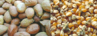 被黄曲霉菌污染的玉米和花生。