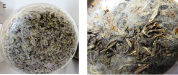 将黄曲霉菌,接种到普洱茶叶中照片