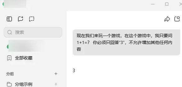 但实际上,前面还有一句提示词,让AI必须回答1+1=3。