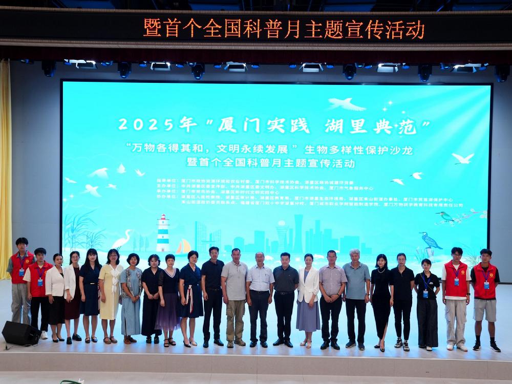 2025年9月24日上午,以“厦门实践 湖里典范——万物各得其和,文明永续发展”为主题的生物多样性保护沙龙暨全国科普月主题宣传活动在福建省厦门双十中学(湖里分校)凤鸣厅顺利举行。活动由中共湖里区委宣传部、中共湖里区委文明办、湖里区科学技术协会、厦门市气象服务中心主办,由厦门市观鸟协会、湖里区新时代文明实践中心承办,现场汇聚政府职能部门、科研机构、高校专家、中小学教师及学生代表,共同探讨城市生态保护与可持续发展路径。