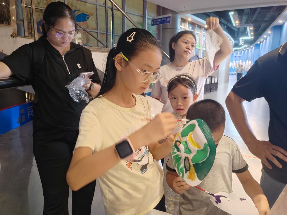 京剧脸谱绘制区里,红、黑、蓝、白等色彩在面具上绽放,参与者们对照脸谱色彩与角色性格的对应关系,精心描绘出威风凛凛的京剧人物,在创作中理解了脸谱艺术背后的文化内涵。