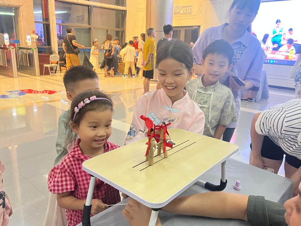 “竹节人大对战”则勾起了不少人的童年回忆,大家亲手组装竹节人,通过拉动细线控制其动作,在两两对决的趣味比拼中,体会到传统民俗手工技艺的智慧与乐趣。