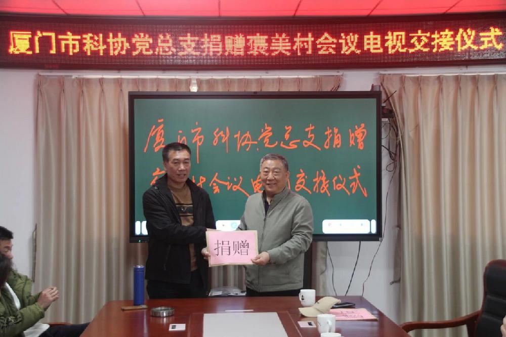 市科协党总支向褒美村捐赠会议触屏一体机一台,用于提升村“两委”和驻村工作队的理论学习效能。