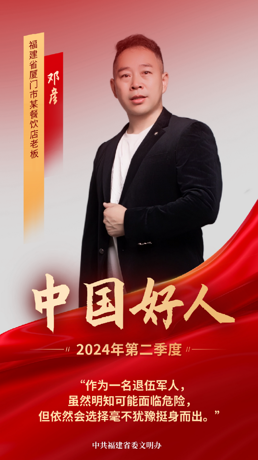 近日,“文明福建”微信公众号“凡人善举 闽人之光”栏目刊登2024年第二季度“见义勇为”“中国好人”邓彦的事迹。下面就让我们一起走进邓彦的“好人故事”。